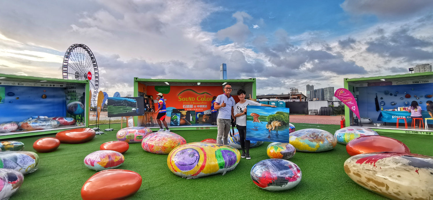 不同大小的圓方角藝術石頭,以無國界、無種族、藝術可共融為創作理念,吸引著不同國籍的海內外藝術家、名人、明星支持攜手合作。